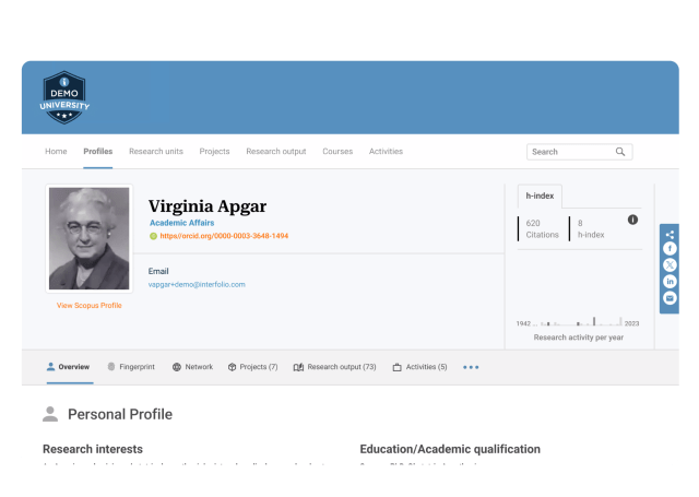 Powered by Faculty Activity Reporting, Interfolio Faculty Web Profiles help faculty tell their academic story with ease.